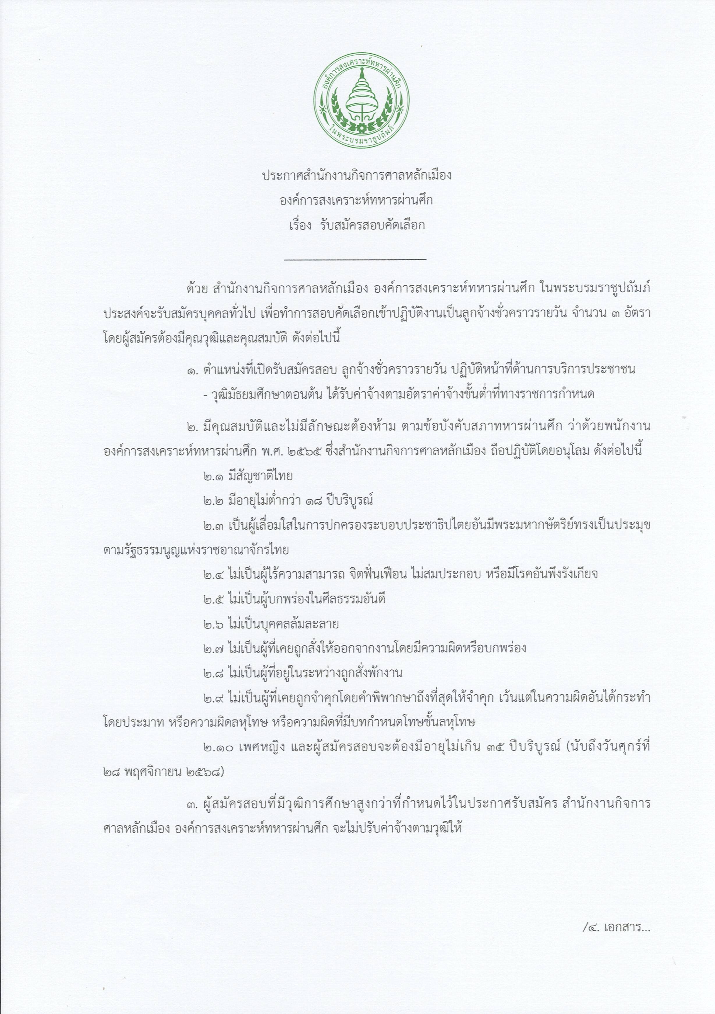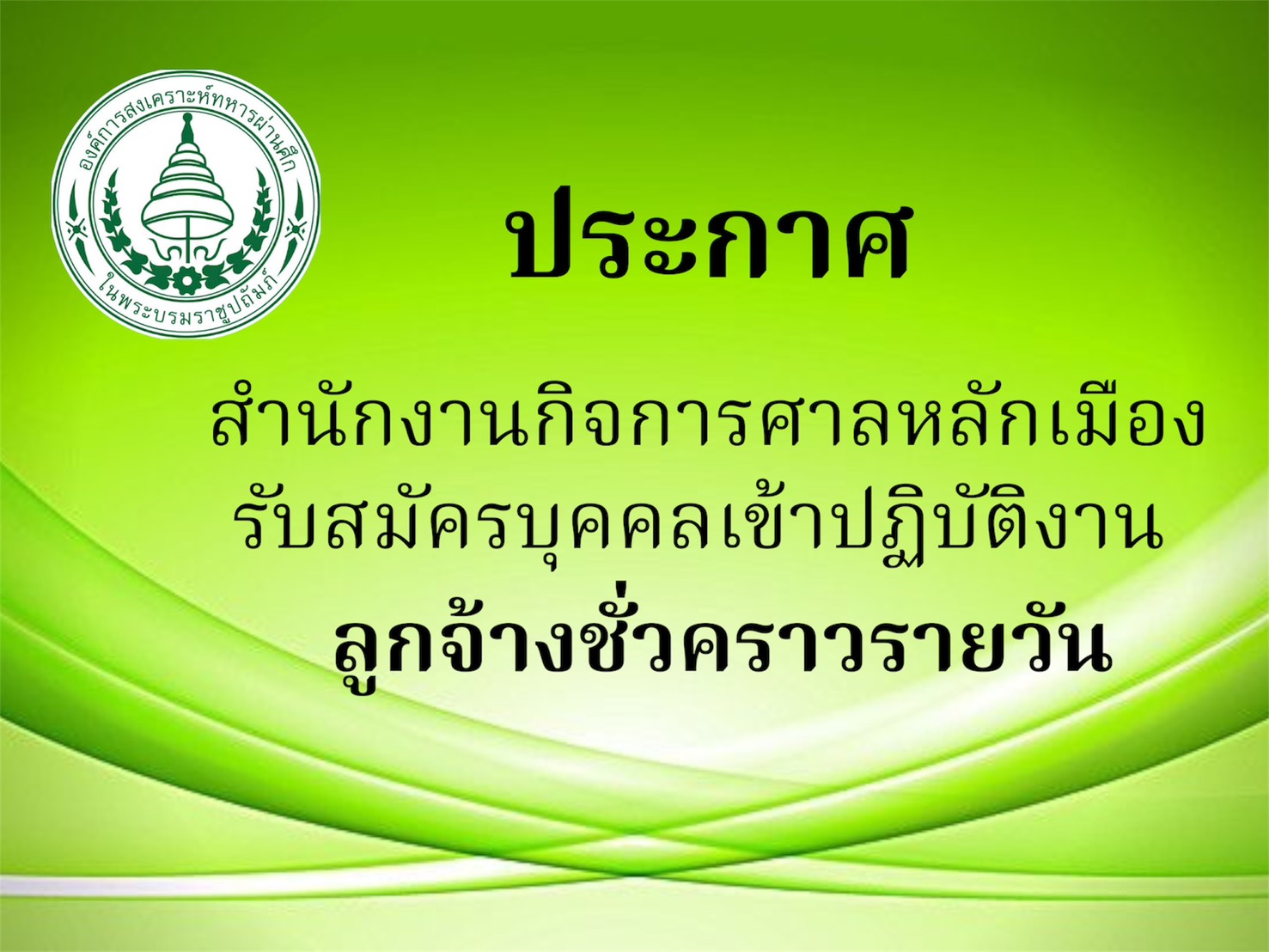 ประกาศ สำนักงานกิจการศาลหลักเมือง รับสมัครบุคคลเข้าปฏิบัติงาน ลูกจ้างชั่วคราวรายวัน