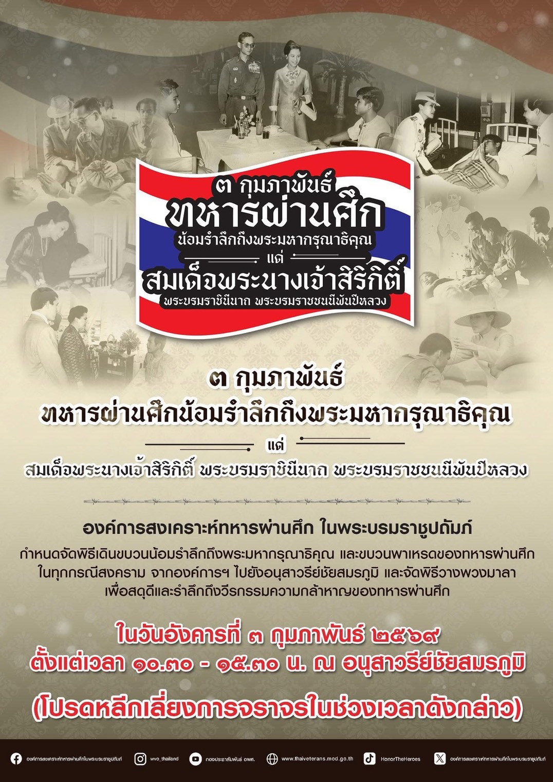 ๓ กุมภาพันธ์ ทหารผ่านศึกน้อมรำลึกถึงพระมหากรุณาธิคุณ - แด่ - สมเด็จพระนางเจ้าสิริกิติ์ พระบรมราชิน...